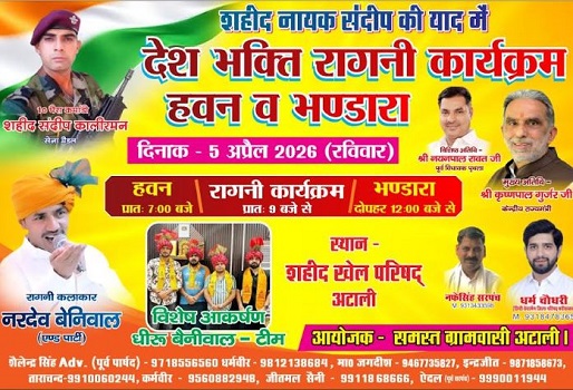 Read Moreफरीदाबाद: अटाली गांव में शहीद संदीप कालीरमन की याद में देशभक्ति रागनी कार्यक्रम 5 अप्रेल को