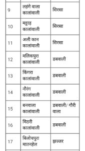 हरियाणा के विभिन्न जिलों के 17 गांव को भी नई तहसीलों से संबंधित किया गया है:
