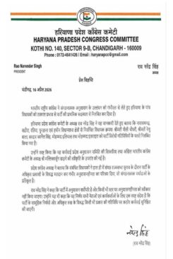 नई दिल्ली/चंडीगढ़। हरियाणा में हाल ही में हुए राज्यसभा चुनाव के बाद कांग्रेस पार्टी ने बड़ा कदम उठाते हुए अपने ही 5 विधायकों को प्राथमिक सदस्यता से निलंबित कर दिया है। यह कार्रवाई उन विधायकों के खिलाफ की गई है, जिन्होंने पार्टी की आधिकारिक लाइन से हटकर मतदान किया था।